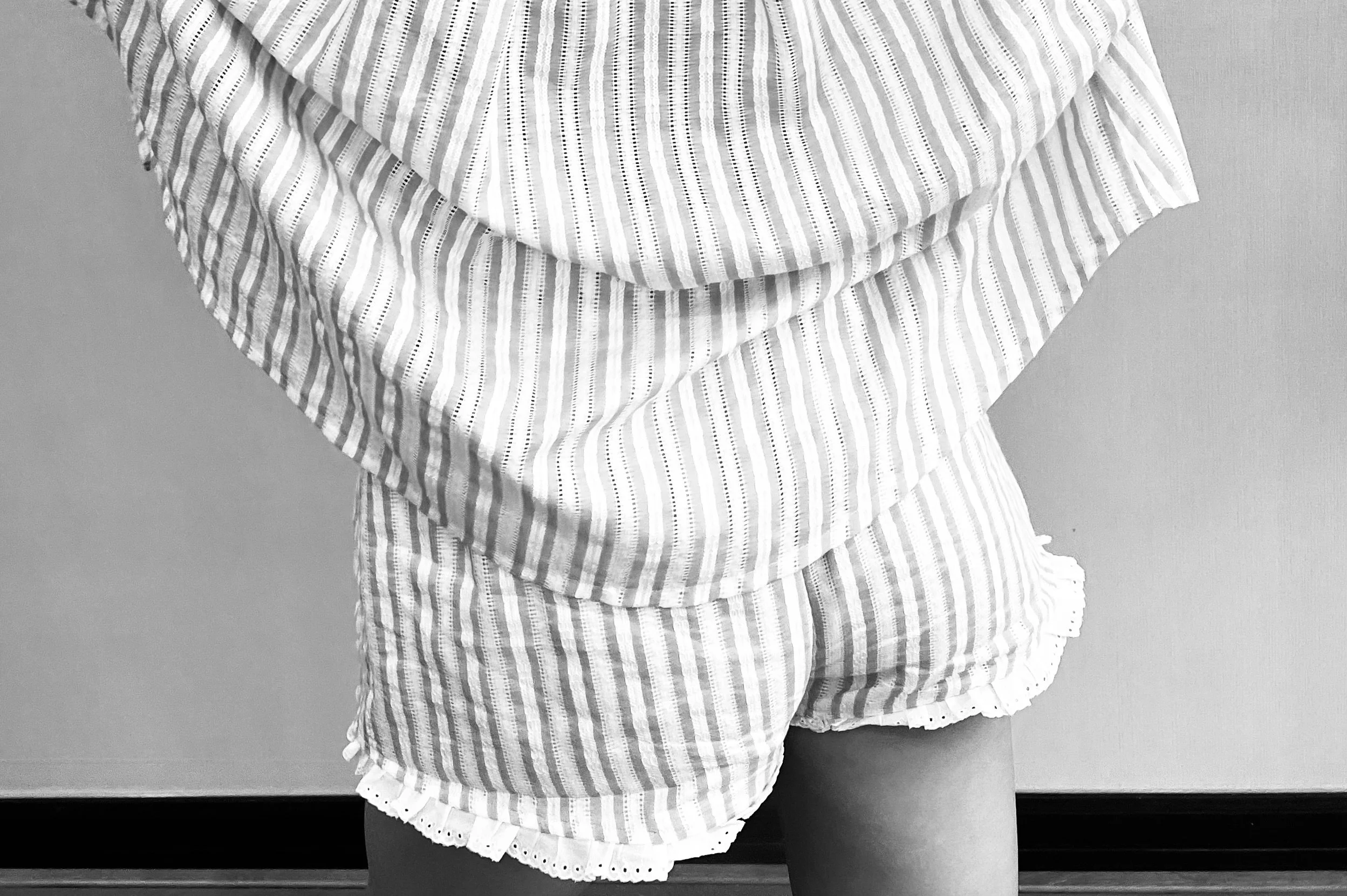 This is a 3-piece set fashion look. 100% soft cotton lined with 100% silky linen. Decorative bows are 100% silk.